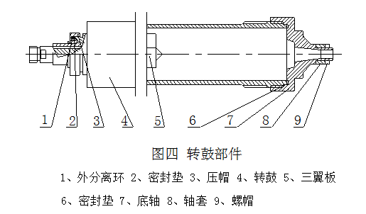 管式分離機(jī)主要由機(jī)身部件(見圖一),傳動(dòng)部件(見圖一),主軸傳動(dòng)部件(見圖二),漲緊輪部件(見圖三),集液盤部件(見圖一),轉(zhuǎn)鼓部件(見圖四),進(jìn)液軸承座部件(見圖五)組成。